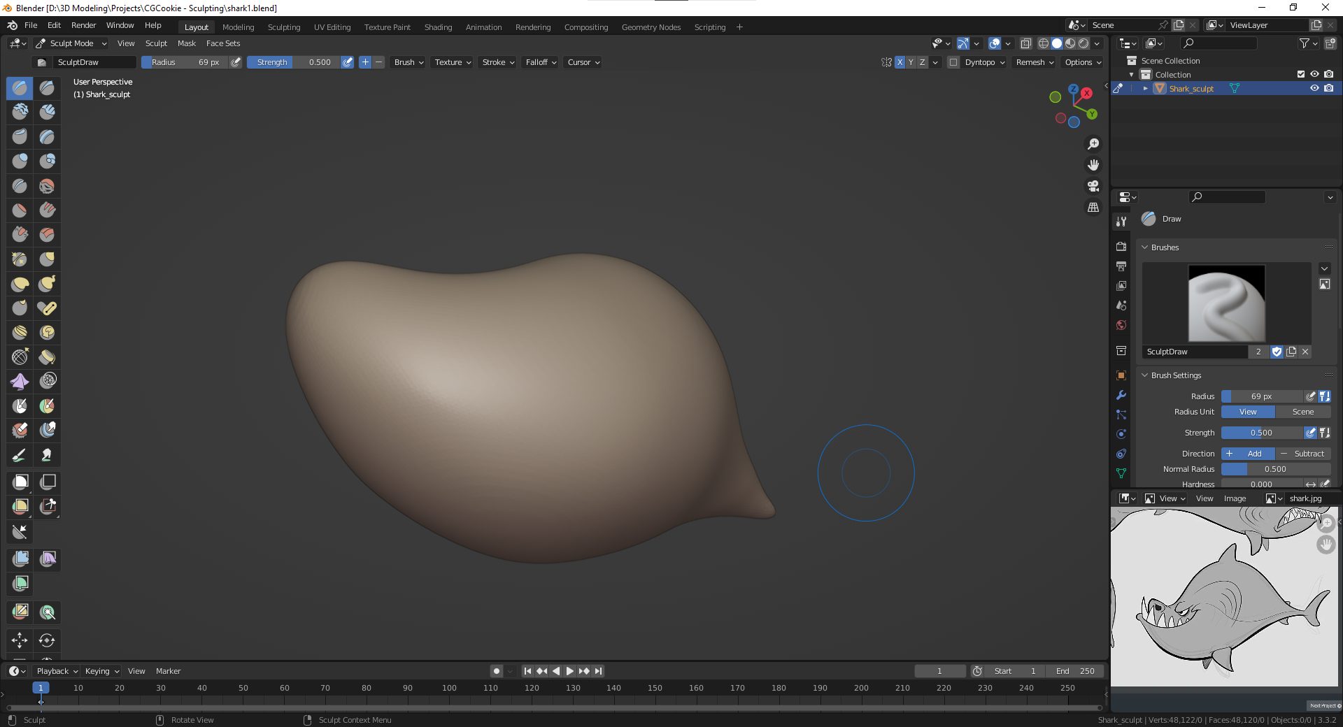 Anyway the tutorial was super understandable, I learned all the basic tools to sculpt this shark and got an interest to dive even deeper into sculpting and organic modeling. A great tutorial for first take on sculpting!